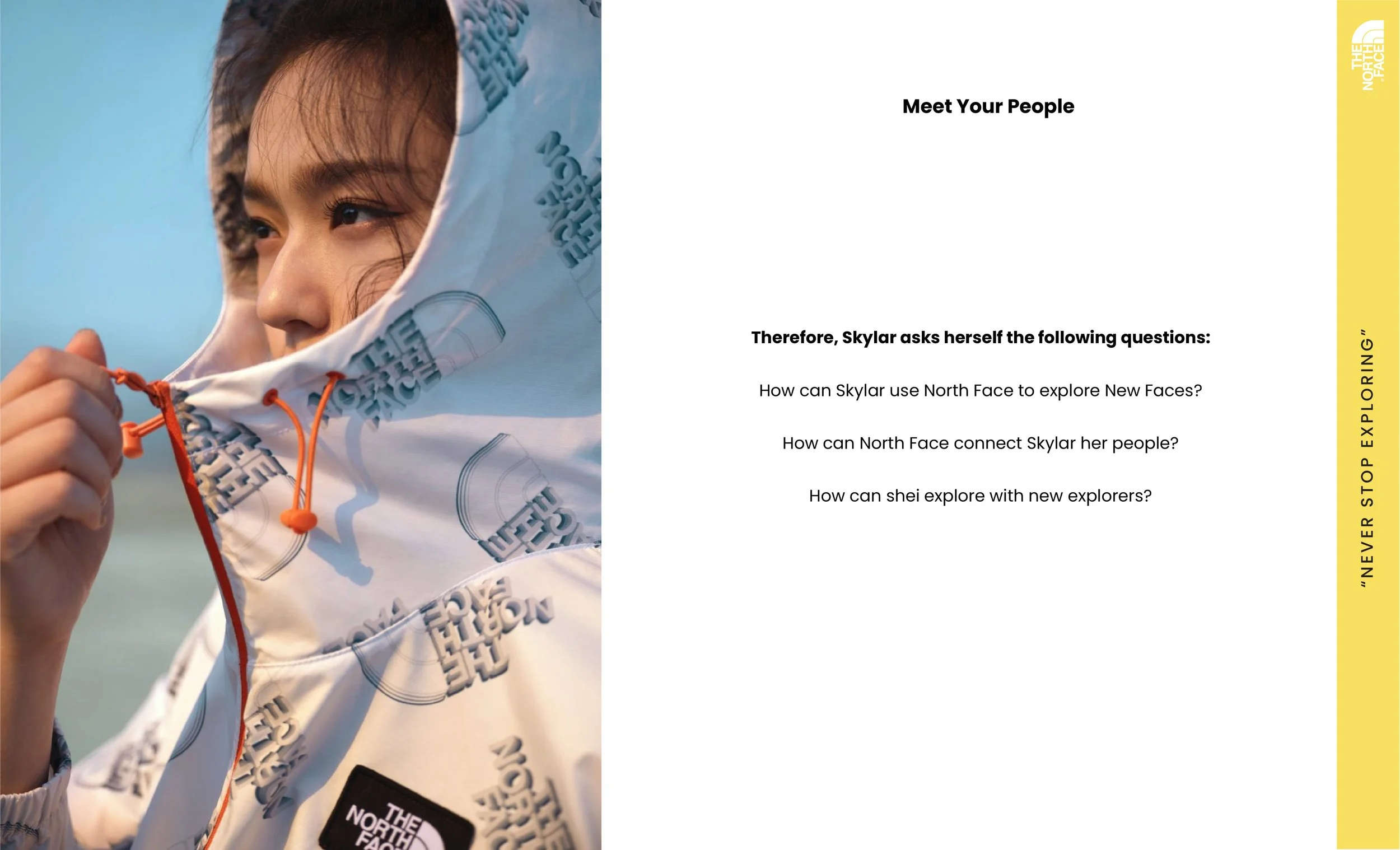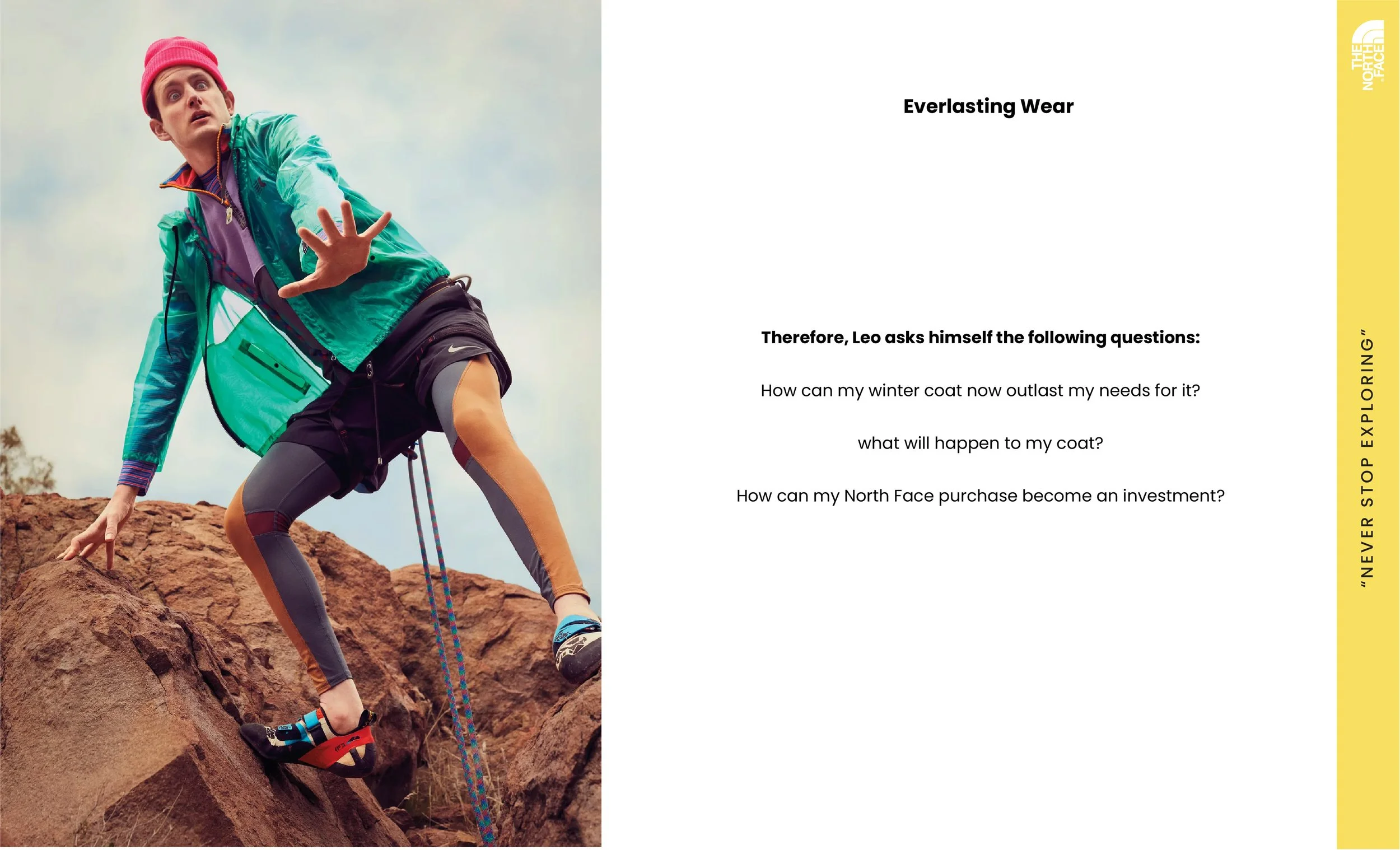 This project represents a conceptual exploration centred on understanding consumer behaviour trends to craft an innovative business solution aimed at resolving a pressing market issue. In this context, we have envisioned a digital barter program tailored for North Face, enabling users to exchange or sell their pre-owned North Face equipment.