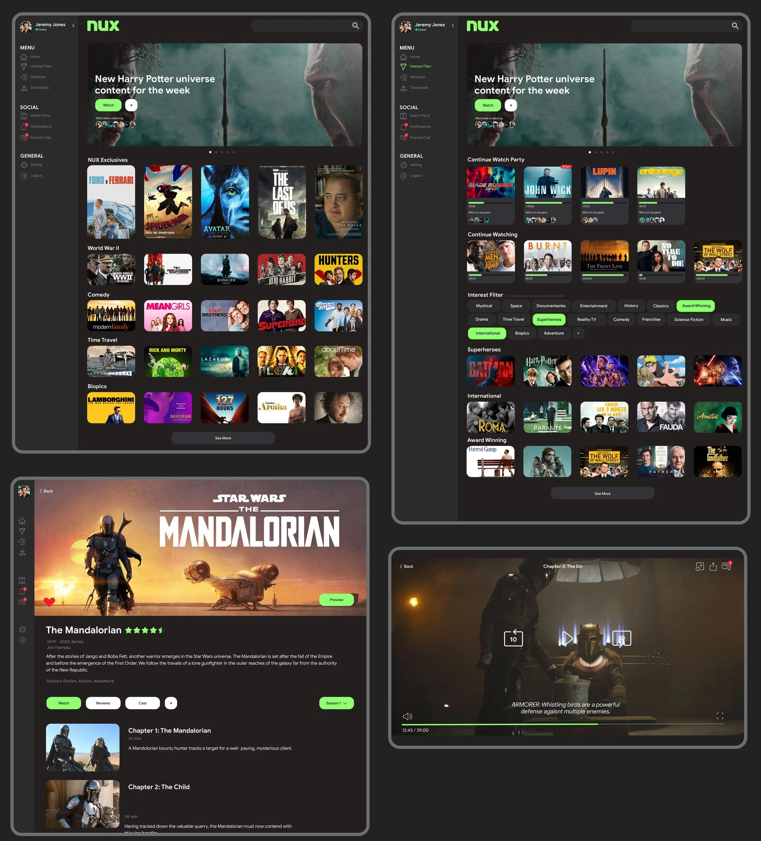 NUX aims to provide its users with an innovative method for showcasing their favorite content. To accomplish this goal, we carefully curated a selection of content tailored to align with Jeremy's streaming preferences.