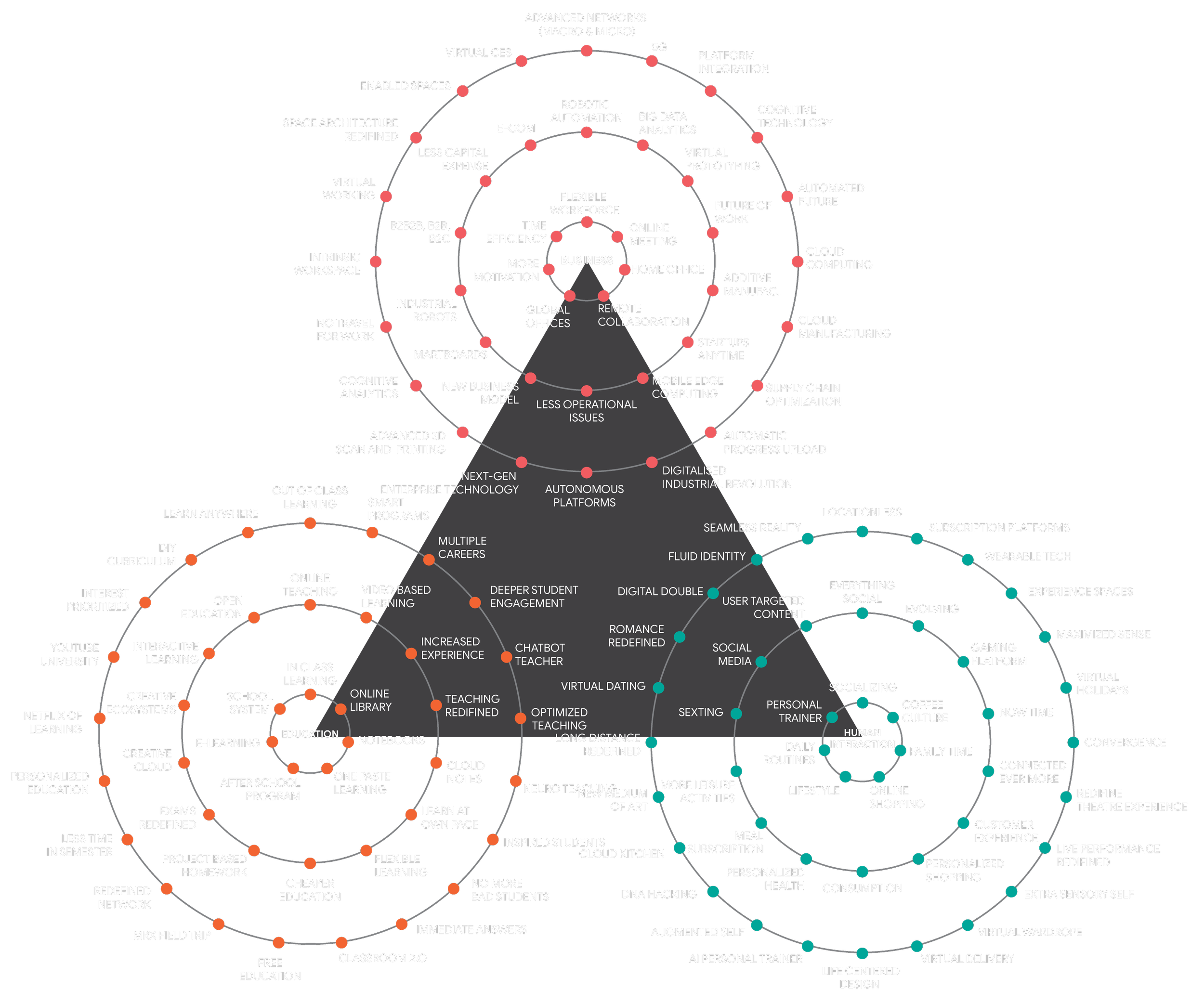 Mixed Reality is set to redefine our understanding of spaces and human behavior within them, blending real and digital environments to create new market opportunities across business, real estate, education, and human interactions. These hybrid spaces pave the way for innovative experiences transcending physical limitations, offering boundless possibilities. The accompanying behaviour map illustrates the exponential growth potential across these diverse sectors, showcasing the vast opportunities emerging in this era of transformative technology.