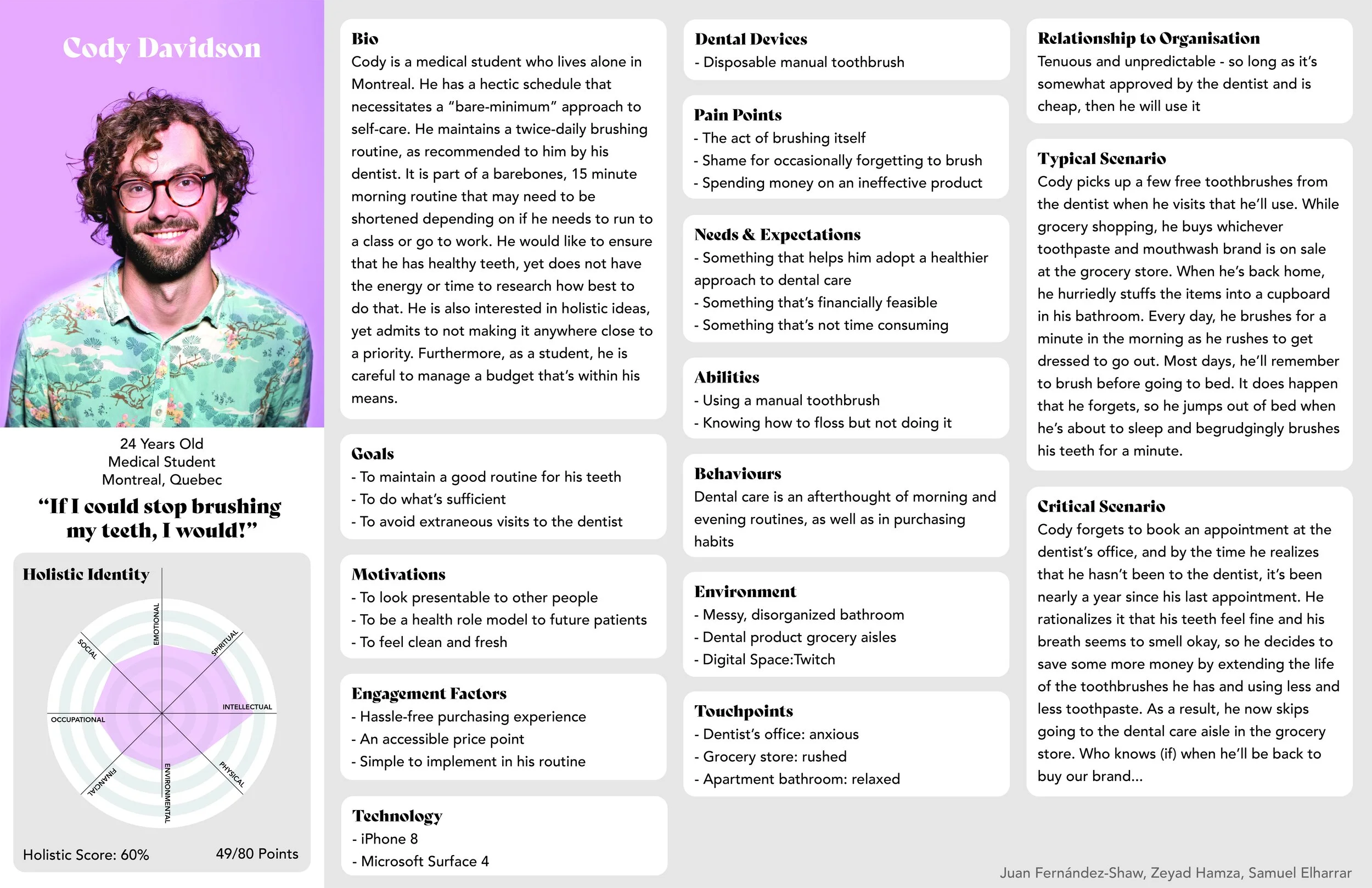 This project consisted of organizing a UX design thinking workshop that would inform a fictional dental company on potential avenues to help them re-envision their dental hygiene line of products and services.